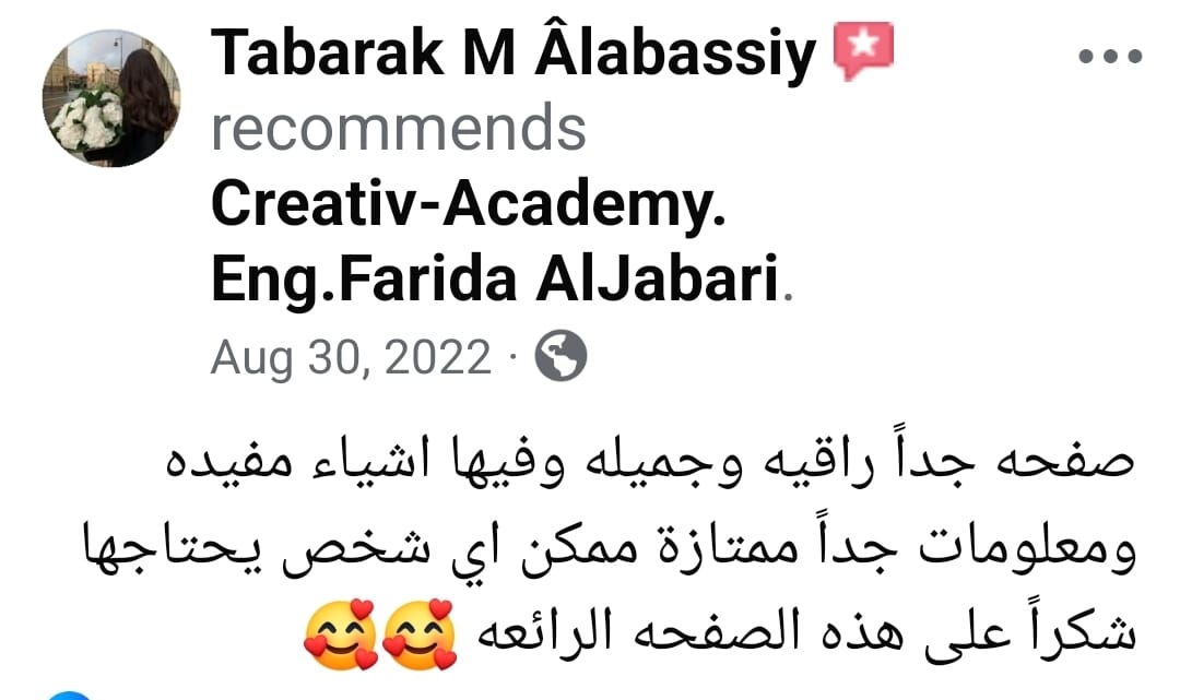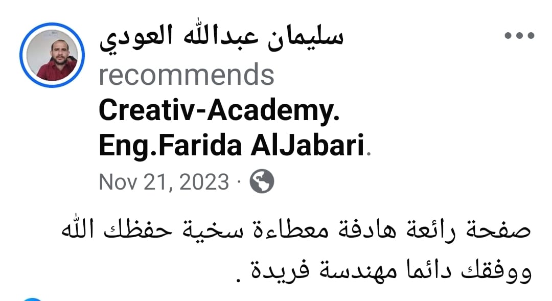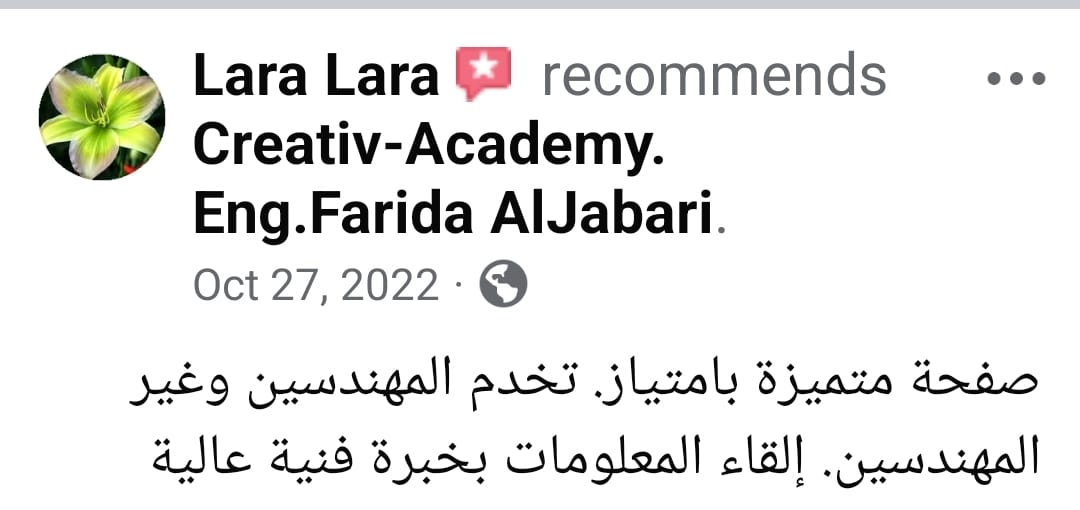 تأسست أكاديمية الإبداع على يد المهندسة فريدة الجباري بدافع الشغف لنقل المعرفة وتطوير الكفاءات، لتكون منصة تدريبية واستشارية رائدة.